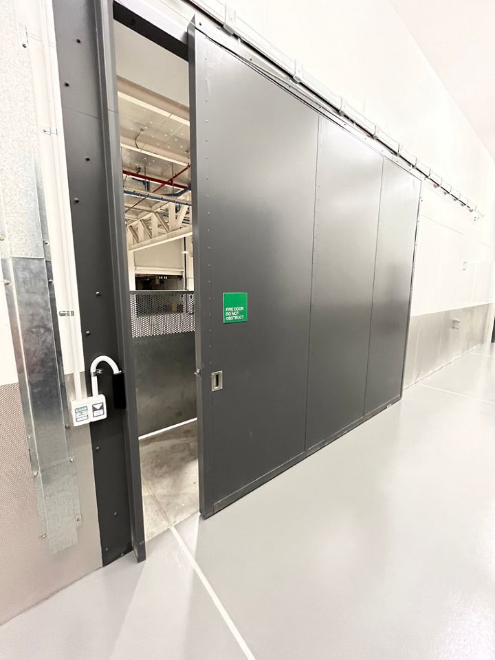 The VP240-S sliding fire door set is used where a large opening in a fire separation (up to 30m2) is required to be closed off in the event of a fire and/or in daily use. Automatic opening and closing is not currently available for Sliding Fire Doors.