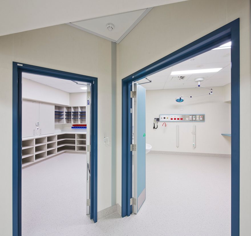 The standard hospital door set is prehung in a steel frame, however timber frame profiles are available upon request.